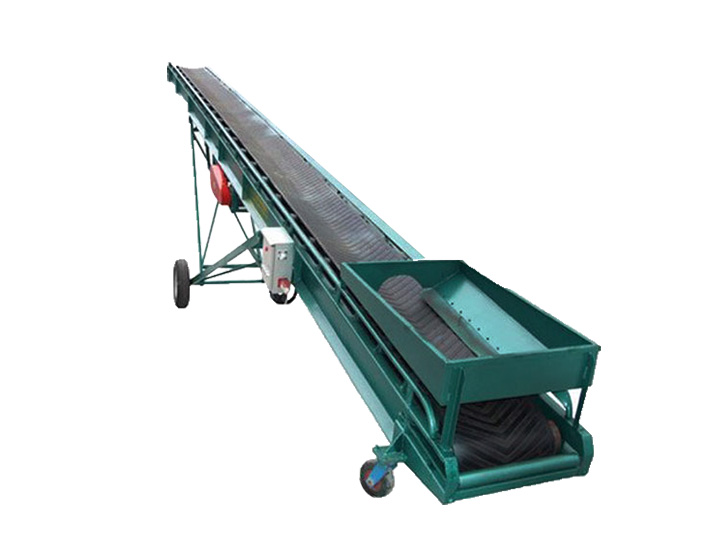 小型可移動皮帶機主要用於(yu) 散裝物料的大傾(qing) 角連續輸送,采用具有波狀擋邊和橫隔板的輸送帶。輸送傾(qing) 角為(wei) 0°~90°。